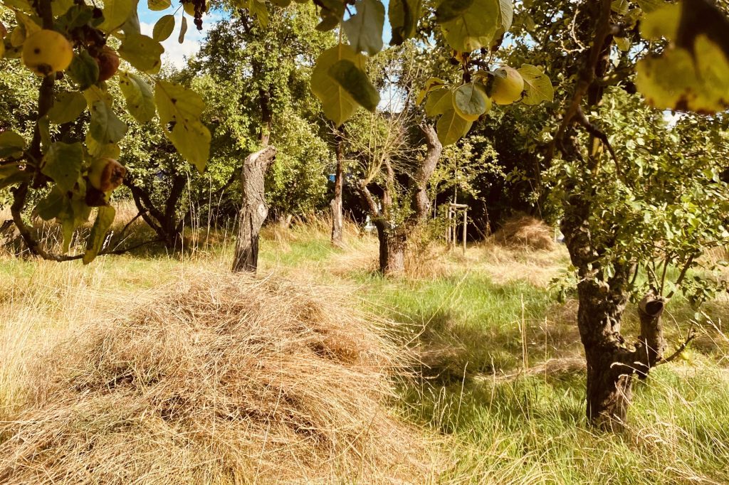 Im September werden wir die 2. Mahd des Jahres in Angriff nehmen und im Oktober dann Saft pressen. Auch die eine oder andere Baumscheibe ist zu hacken um vor allem den jungen Bäumchen die Konkurrenz durch Gräser zu nehmen.