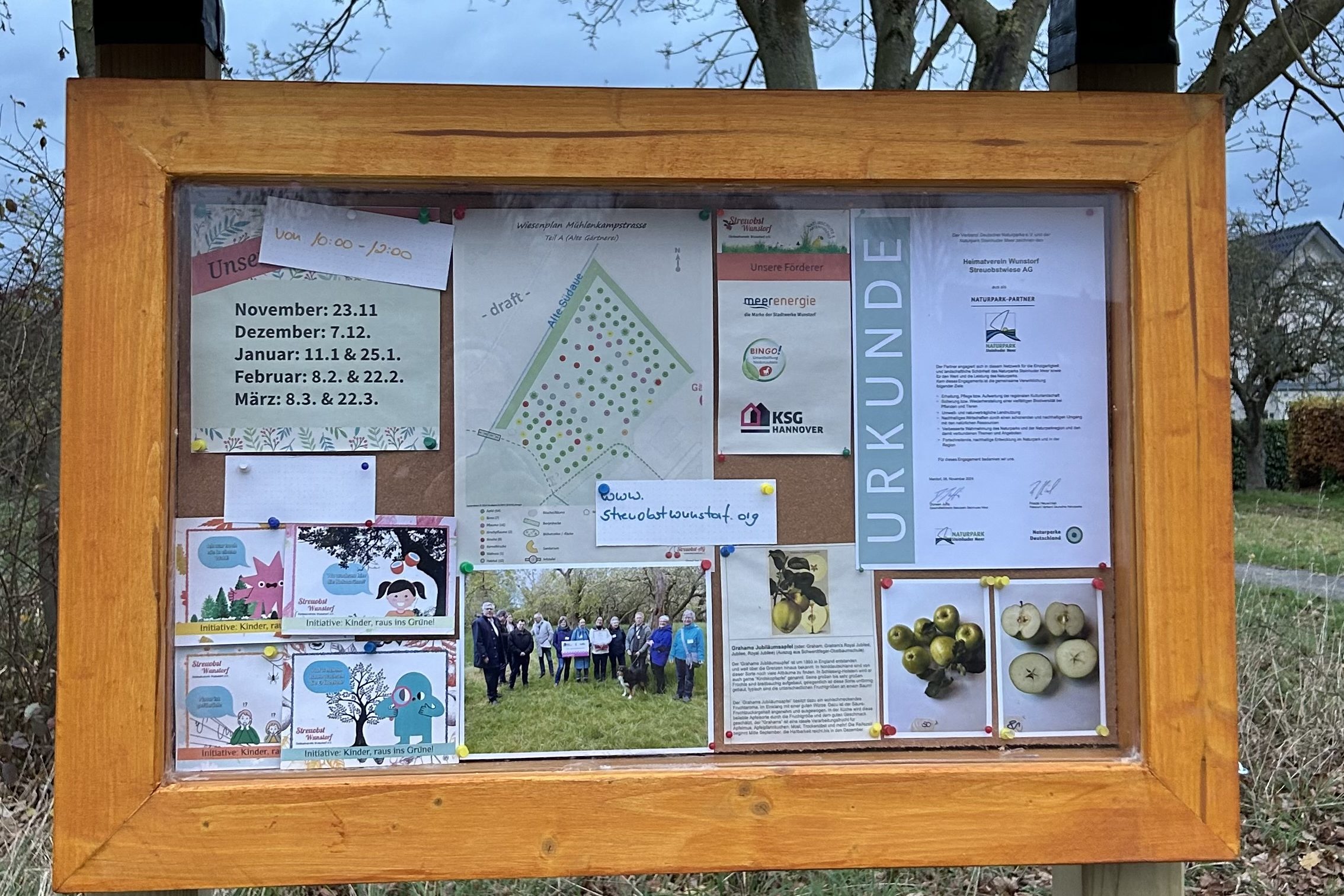 Meldet euch per Email bei uns: streuobst@heimatverein-wunstorf.de. Dann können schon bald eure Beobachtungen und Werkstücke aushängen.