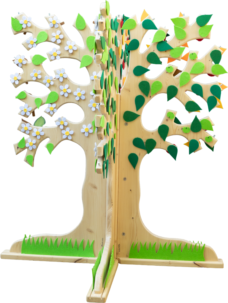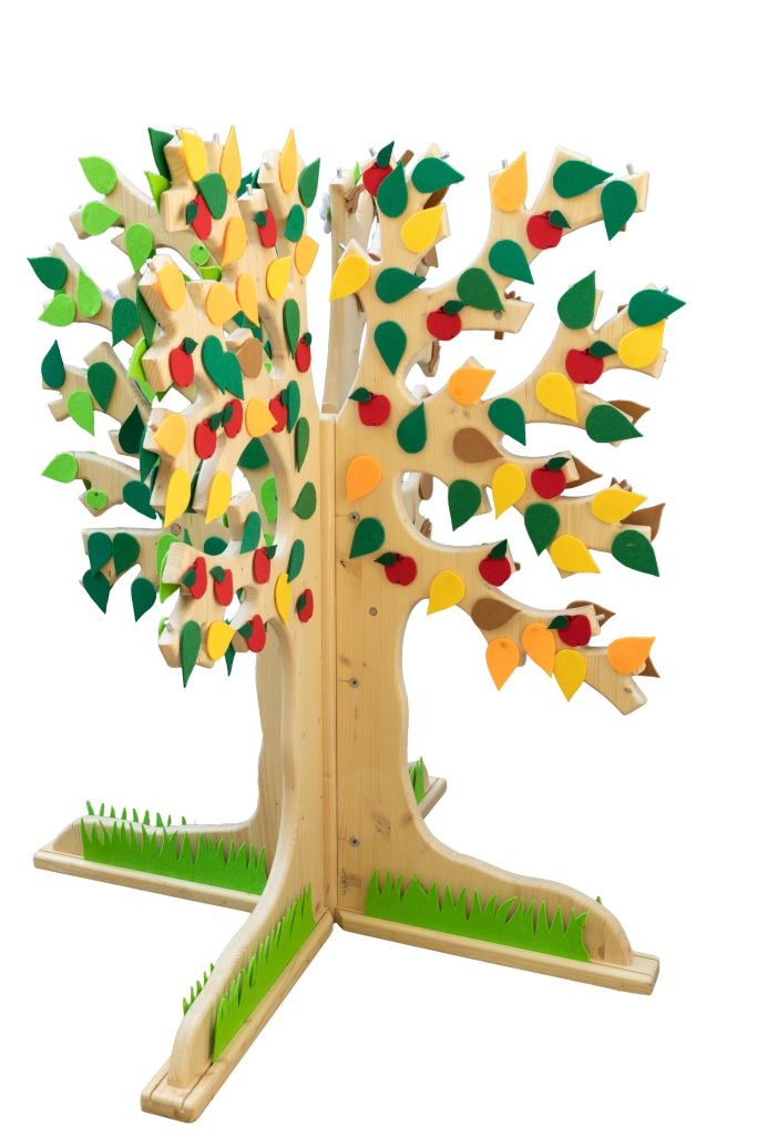 Zu dem Baum gehören Stofftiere die mit einem Chip versehen sind. Eichhörnchen, Maulwurf, Schneeeule und Co. werden auf ein Feld gelegt und schon erklären sie wer sie sind, was sie besonders macht und ob sie auf einer Streuobstwiese wohnen.